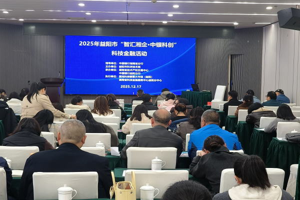 12月17日,由益阳市科技局主办,湖南省技术产权交易所、中国银行益阳分行、潇湘科技要素大市场益阳分市场联合承办的“智汇湘企 中银科创”科技金融活动在益阳羽星大酒店成功举办。活动以深化科技金融生态建设为核心,聚焦科技型企业融资痛点,精准对接政策与金融资源,助力科技成果转化落地,来自市、区相关部门负责人及80余家企业财务负责人共计111人参与活动。